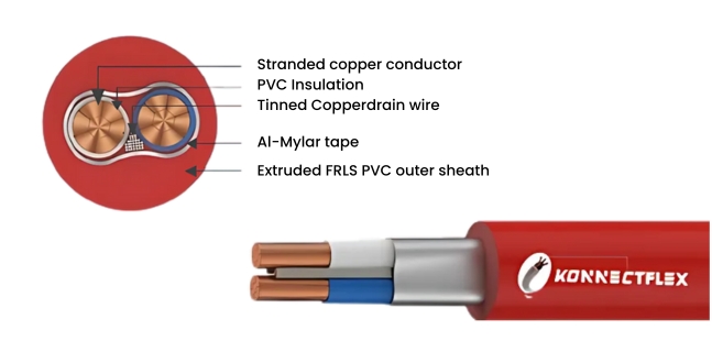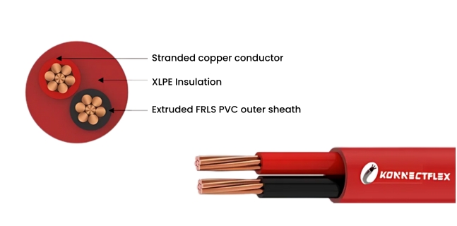 - Outer Sheath: In-house developed thermoplastic compound having low emission of smoke and corrosive gases when exposed to fire.