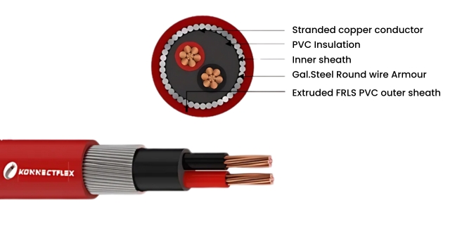 - Armour: Galvanised Steel Round/stripe wire Armoured to give mechanical protection.